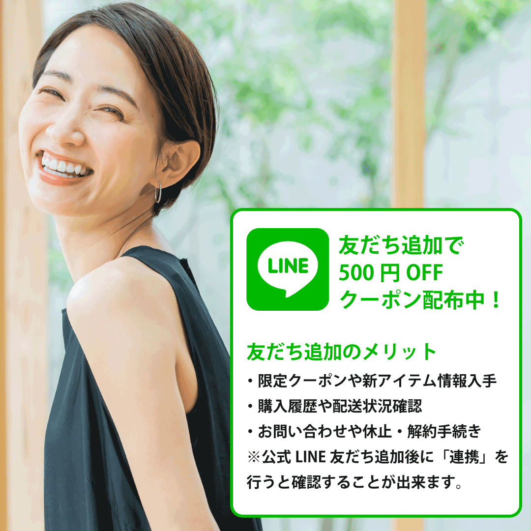 UMBILICALをご愛用頂き誠にありがとうございます。下記「LINE連携」をして頂くと「お得なクーポン情報」「新アイテム情報」「購入や配送履歴」などの情報をLINE上で簡単に確認できるようになります!また「スキップ・休止・解約」は公式LINE上のメッセージからのみ申請を受け付けております。ぜひ、この機会に連携ください。※返信には数日頂く場合がございます